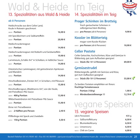 Bestell-Telefon 05141/9591-60 • Fax 05141/86999 • partyservice@fleischerei-zimmermann.de • www.fleischerei-zimmermann.de 21